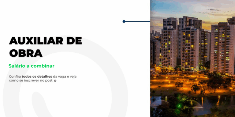 Se você está à procura de uma oportunidade de emprego em Goiânia, temos uma vaga que pode ser perfeita para você! Vaga: Auxiliar de Obra Como Auxiliar de Obra, seu trabalho será fundamental para o bom andamento das atividades. Você…