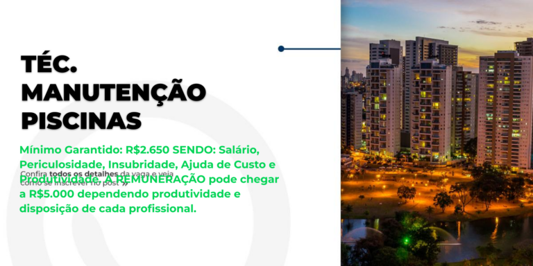 Se você está em busca de uma nova oportunidade de trabalho, esta pode ser a sua chance! A vaga disponível é para Técnico de Manutenção de Piscinas em Goiânia. Vamos conhecer mais sobre essa oportunidade?…