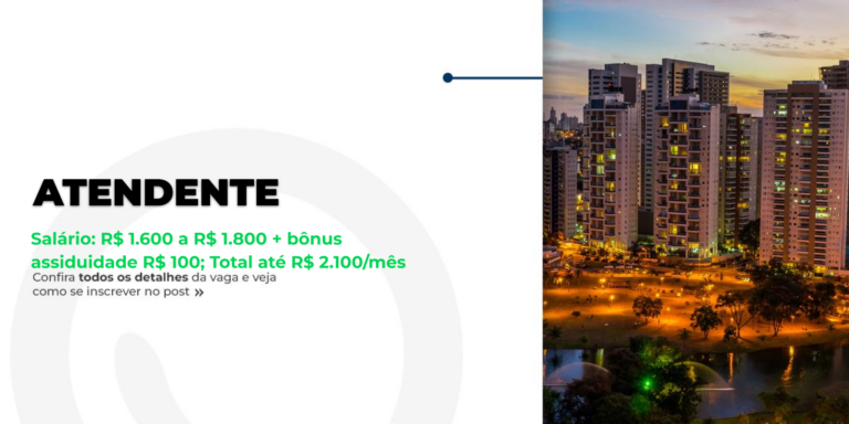 Vaga de Atendente em Goiânia! Até R$ 2.100/mês